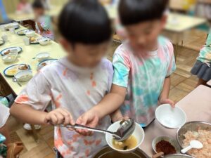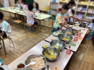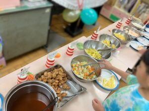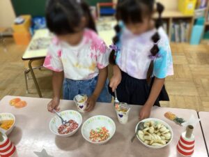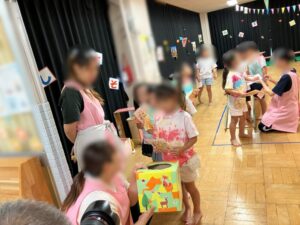 以前は、一泊二日のお泊り保育を行っておりましたが、コロナや災害等で見直し、このような行事へと変えていきました。内容が違っていても、全職員が携り、“年長児一人ひとりが楽しめる、心に残る行事にしたい”という職員の思いは一緒です。