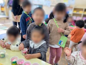 この行事を通して、想像力、発想力、コミュニケーション力が漲り、お友だちと役割分担を決めて、イメージを膨らませたり、年下のお友だちを労ったりと保育園ならではの行事です。