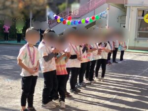 天候にも恵まれ、無事に開催することができました!インフルエンザ流行真っ只中でしたので、こどもたちの健康面にはヒヤヒヤしておりましたが、最後の参加となる年長児は、全員参加することができました!この日に向けて、「できない💦」→「やってみよう!」という気持ちに折り合いをつけながら、お友だちと積み重ねた経験が就学にもきっと繋がっていくことでしょう。